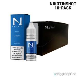 Nicshots eller nikotinshots är namnet på de flaskor med nikotin som du själv tillsätter i din shortfill och e-juice. Nikotinshot kan blandas med en större flaska nikotinfri basvätska eller en shortfill. Vill du lära dig mer om nikotinshots eller beställa hem en flaska, besök vår sida med nicotinshots. Hur tillsätter man nikotin i en shortfill? För att själv tillsätta nikotin i din shortfill behöver du köpa en nikotinsalt shot eller en nikotinshot. När du har både en flaska med nikotinshot och e-juice öppnar du båda flaskorna. Det kommer att finnas ett utrymme i din e-juice för att fylla på med nikotinet - därför heter det just shortfill! En 60 ml flaska innehåller 50 ml e-juice för att det ska finnas plats för 10 ml extra vätska. Häll därför i din nikotinshot eller nikotinsalt shot i flaskan. Skaka den ordentligt (Shake and Vape!) för att blanda vätskorna ordentligt. Vänta sedan en minut och skaka igen. Sedan är det bara att börja vejpa!