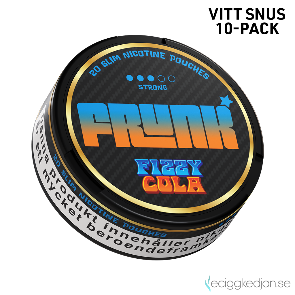 Frunk Slim Fizzy Cola är ett vitt snus, tobaksfritt snus med smak av cola och mint, mentol. En dosa innehåller 20st prillor. Prillorna har slim-format och produkten har en stark nikotinstyrka, klassificerad som Strong (3 av 4). Nikotininnehållet är 9 mg per portion. Produkten är tillverkad i Sverige på uppdrag av N One Global AB.