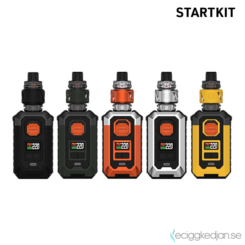 VAPORESSO ARMOUR MAX är de nya boxkiten för dubbla eller enkla 21700-batterier, designade för erfarna DTL-vapers (Direct To Lung). Tillverkade helt i TPU-material skyddar ARMOUR både tank och mod för maximalt skydd. Det handlar inte bara om skydd utan även om smart ingenjörskonst, som uni-lock-funktionen som förenklar användningen och förbättrar din vapingupplevelse. Med den innovativa iTank 2 och GTi-coil-teknologin levererar de mer exakt smak och upp till 50 % längre livslängd.